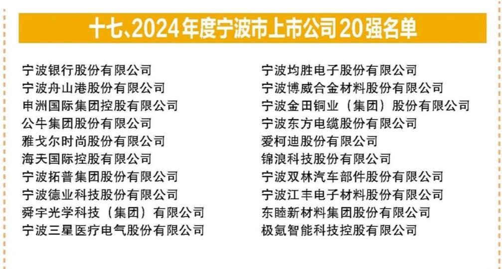 开云中国股份荣登“2024宁波上市公司20强”榜单